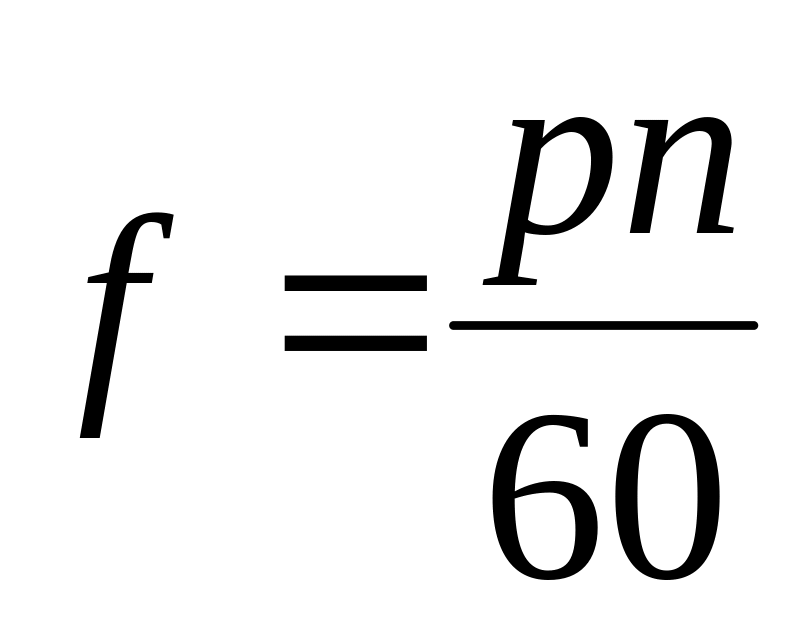 Частота f ЭДС, наводимой в фазных обмотках статора, зависит от частоты вращения ротора n, числа пар его полюсов p и определяется зависимостью: