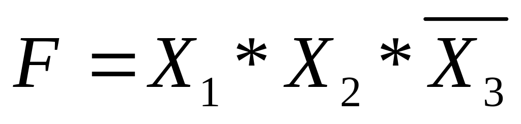 Пусть требуется создать комбинационную схему с тремя входами Х1, Х2, Х3 и одним выходом F. Высокий уровень напряжения на выходе должен появляться только при высоких уровнях на входах Х1 и Х2, т.е. F = 1 при Х1 = Х2 = 1 и Х3 = 0.