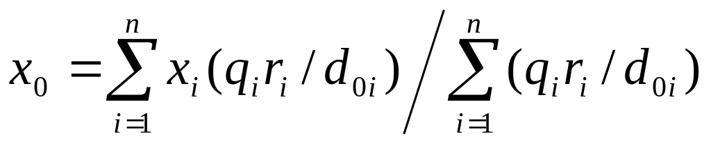 Знаходження оптимальних координат x0, y0 здійснюється з допомогою алгоритму, який ітераційно сходиться. Кількість ітерацій залежить від необхідного ступеню точності координат.