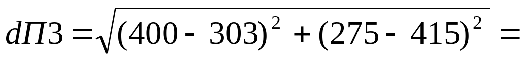 Як бачимо, вже на другій ітерації (координати 307; 410) ми отримали збільшення сумарних витрат. То ж, оптимальним розміщенням складу будуть координати (303; 415).