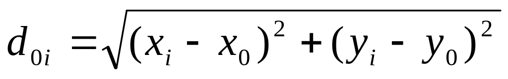 Крок 1. Розрахунок відстані між складським комплексом і постачальниками/замовниками (d0):