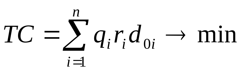 d0i – відстань між складським комплексом і i-м постачальником/замовником.