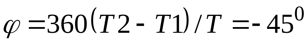 Выставив затем курсор 1 на ноль тока, а курсор 2 на ноль напряжения можно получить временной сдвиг между током и напряжением непосредственно на табло Т 2 – Т 1. Но для того, чтобы вычислить фазовый сдвиг, нужно еще провести дополнительные вычисления по формуле: