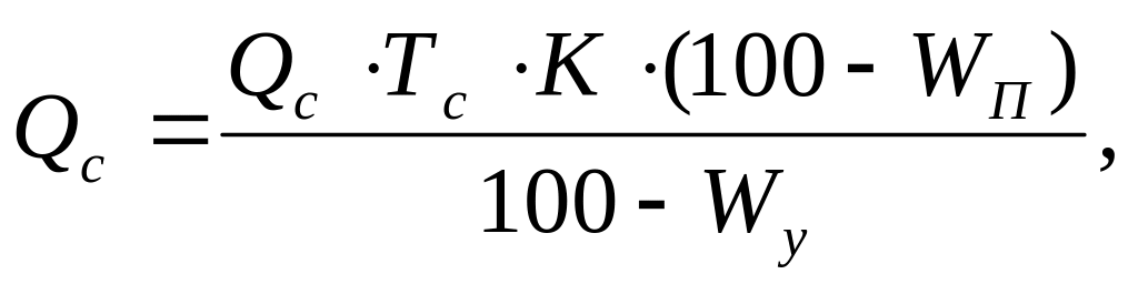 Wу –условная влажность готовой продукции, (Wу=60-80)%;