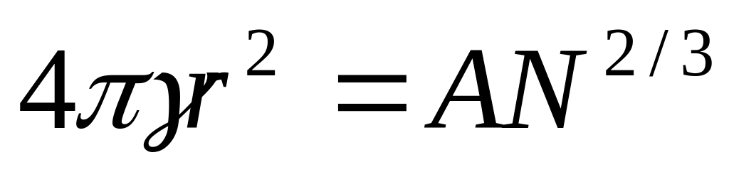 Поверхностная энергия при плотнейшей упаковке составляющих ее N шаровых частиц при приближении капельной модели, определяется условием: