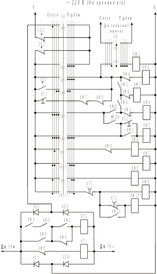 Виконання технічних вимог може забезпечити типова схема релейно-контакторного керування електроприводом механізму підйому.