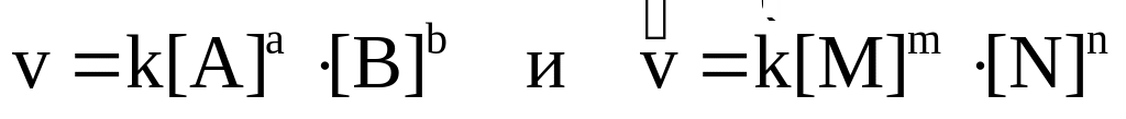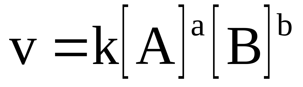 где v - скорость реакции; a и b – стехиометрические коэффициенты в уравнении реакции; k – константа скорости; [A] и [B] – молярные концентрации веществ A и B соответственно.