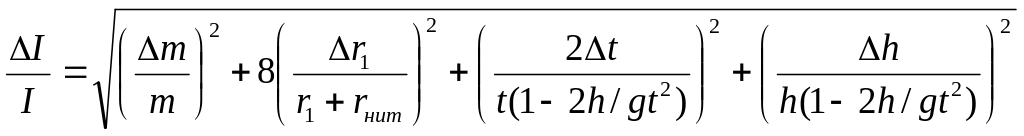 Вычислить абсолютную погрешность измерения момента инерции маятника, как косвенного измерения. При этом удобно вычислить сначала относительную погрешность