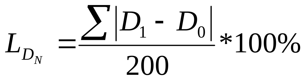 Таким образом, при расчете средних арифметических показатели , получили что: на 2,28% в среднем отличается удельный вес каждой группы двух структур и 11,4% процентных пунктов составляют фактические различия двух структур от величины их предельных различий, составляющих 200%.