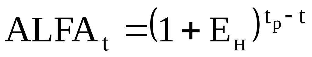 В процессе использования нового ПС чистая прибыль в конечном итоге возмещает капитальные затраты. Однако, полученные при этом суммы результатов (прибыли) и затрат (капитальных вложений) по годам приводят к единому времени – расчетному году (за расчетный год принят год разработки ДП) путем умножения результатов и затрат за каждый год на коэффициент привидения (ALFAt), который рассчитывается по формуле: