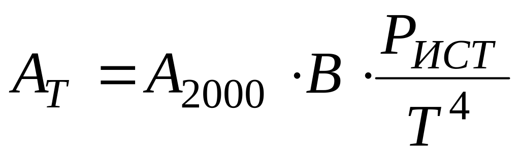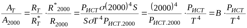 путем математических преобразований можно получить формулу для определения температуры источника излучения: