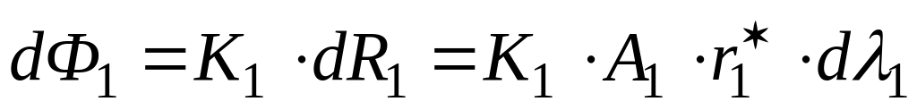 Излучение, дошедшее до приемника (фотодиод, фотосопротивление), составляет некоторую часть от общего излучения источника. Оно определяется размерами приемника, расстоянием от источника до приемника и наличием на пути излучения поглощающих сред, т.е. определяется такими параметрами измерительной системы, которые не изменяются в процессе опыта. Для двух различных приемников, воспринимающих поток падающего на них излучения в различных узких диапазонах длин волн, величины этих потоков будут равны: