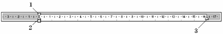 На горизонтальной координатной линейке (рис.24) находятся: маркер первой строки (1), маркер левой (2) и правой (3) границ абзаца. Перетягивая их с помощью мыши, можно изменять соответствующие параметры абзаца.