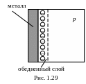 Рассмотрим зонную диаграмму контакта металл-полупроводник р-типа (рис. 1.28) до и после получения контакта.
