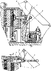 Через отверстие Г в крышке редуктора отверткой повернуть нажимной упор 6 против часовой стрелки до отказа, а затем повернуть назад на два зуба, удерживая нажимной диск 4 и нажимной упор 6; вставить коническую шестерню 10.