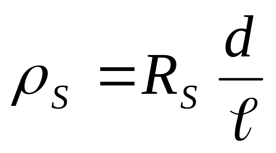 Удельное поверхностное сопротивление ρS численно равно сопротивлению квадрата, , мысленно выделенного на поверхности материала, если ток проходит через две противоположные стороны этого квадрата. Удельное поверхностное сопротивление ρS измеряют в омах и рассчитывают по формуле:
