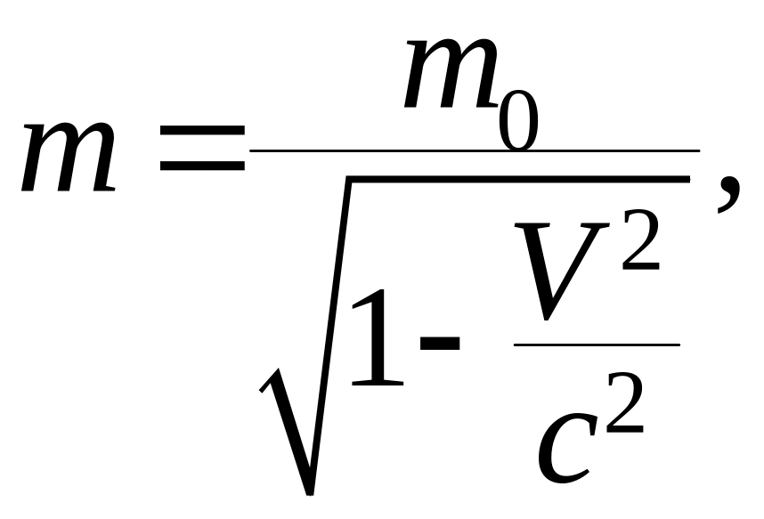В 1905 году А.Эйнштейн внес изменения в законы механики. Он предположил, что масса тела возрастает со скоростью V