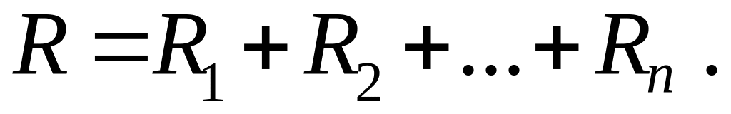 При последовательном соединении сопротивлений R1 и R2 через оба сопротивления течет одинаковый ток.