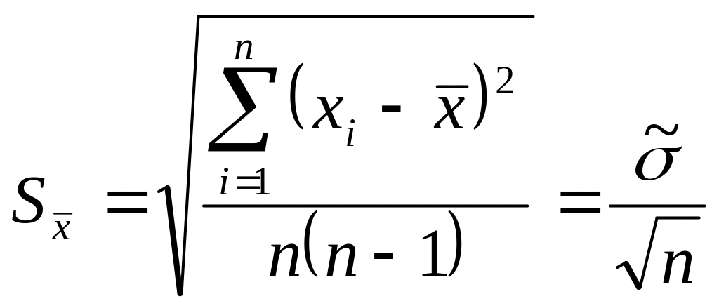 При этом если наблюдения в серии подчиняются нормальному закону, то их среднее подчиняется распределению Стьюдента с n – 1 числом степеней свободы. Мерой рассеяния результата служит СКО среднего арифметического