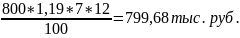 где Са/м = 2500 − стоимость автомобиля (первоначальная или восстановительная), тыс. руб. Спр = 800 − стоимость прицепа (первоначальная или восстановительная), тыс. руб. Nа/м = Nпр − 7 количество автомобилей, шт. 12- количество месяцев в году
