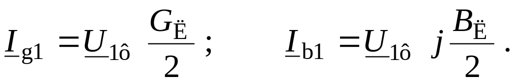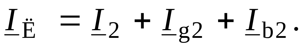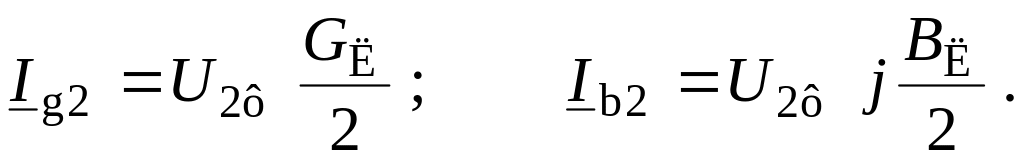 Примем, что вектор фазного напряжения в конце линии U2ф направлен по действительной оси, тогда можно записать U2ф = U2ф. При активно-индуктивной нагрузке вектор тока I2 отстаёт от напряжения U2ф на угол φ2. По закону Ома токи проводимостей в конце линии: