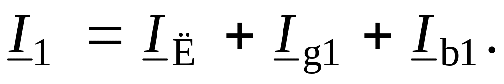 Ток Ig1 совпадает по направлению с напряжением U1ф, т.к. носит активный характер, а емкостной ток Ib1 опережает вектор U1ф на 90°. Вектор Ig1 пристраиваем к концу вектора IЛ, а вектор Ib1 – к концу Ig1.