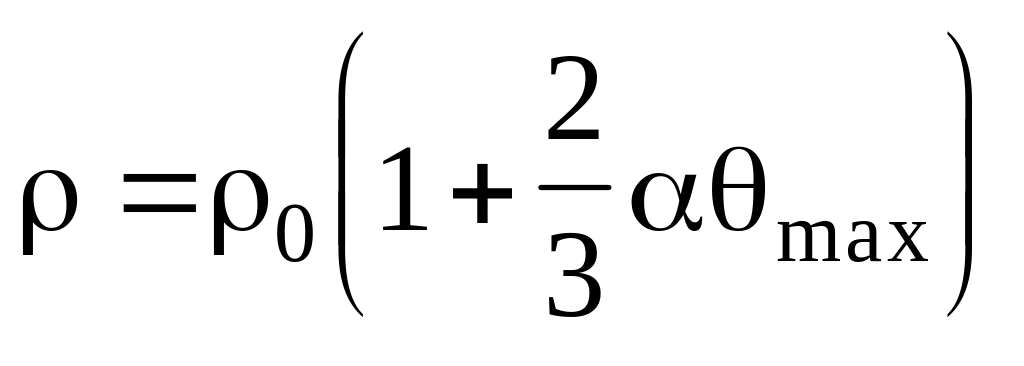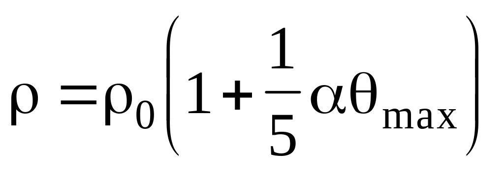 При розрахунках опорів по формулам (6.6), (6.7) необхідно врахувати залежність питомого опору матеріалу контакту від температури. В контакті температура по перерізу неоднакова. При протіканні через площу великих за значенням й таких, що змінюються за часом струмів КЗ, спостерігається витиснення ліній струму на периферію контактної площини, де й спостерігається максимальна температура [6]. Тому при суворому визначенні залежності питомого електричного опору необхідно врахувати закономірність розподілу температури за коефіцієнтами. При приблизних розрахунках опір визначається для середньої температури в зоні звуження (стягування). Вважається, що середня температура приблизно дорівнює 2/3 максимальної температури max, яка відноситься до площадки дотику. Тому для контактів зміна питомого електричного опору від температури [9].