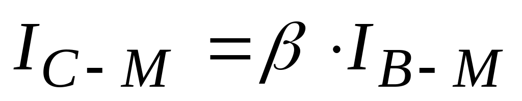 Схема на змінному струмі дозволяє визначити амплітуди змінних складових струму бази IB-М, струму колектора IC-М, напруги на колекторі. При відомому значенні амплітуди напруги генератора ЕGМ, амплітуди струмів та напруг можна визначити за допомогою наступних виразів (значок М означає амплітуду змінної величини):