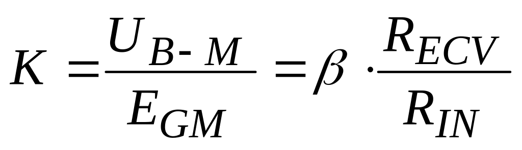 Отримані вирази дозволяють визначити коефіцієнт підсилення по напрузі (К) як відношення амплітуди вихідної напруги до вхідної: