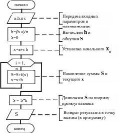 Таким образом, схема алгоритма вычисления интеграла (2) будет иметь вид.