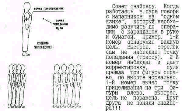 При ведении огня снайпер должен внимательно наблюдать за результатами своего огня и корректировать его, внося необходимые изменения в установки прицела и бокового маховичка или в положение точки прицеливания.