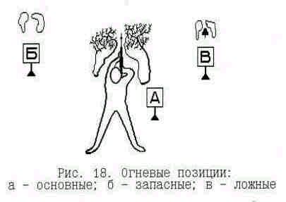 В обороне снайперы оборудуют основные, запасные и ложные огневые позиции (рис.18), в некоторых случаях и передовые снайперские позиции.