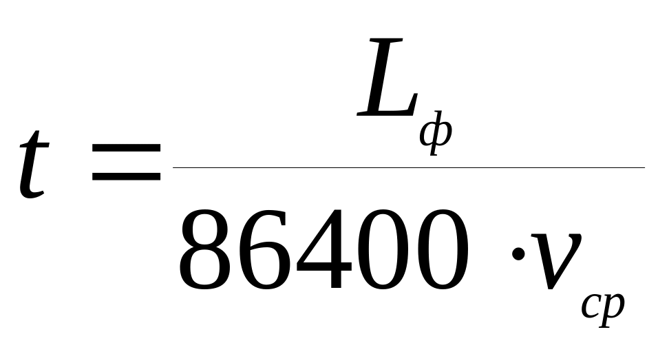 t = Lф/vср =2,5∙1000/0,50∙86400 = 0,058 діб.