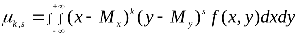 Опр. Начальным моментом порядка k,s системы двух с.в.(Х,У) называется математическое ожидание произведения XkYs