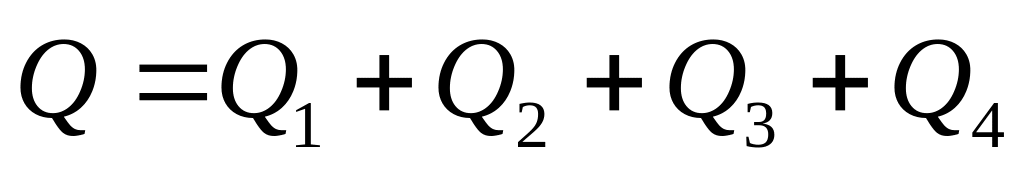 Q=QA+QB+QC+QD+QAB+QAC+QAD+QBC+QBD+QCD+QABC+QABD+QACD+QBCD+ +QABCD