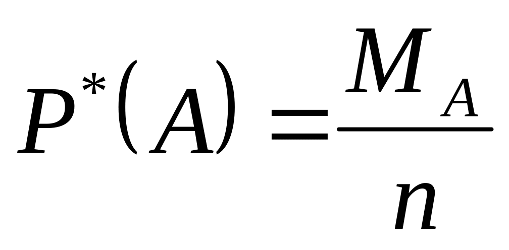 Если производится серия из n опытов, в каждом из которых может появиться или не появиться событие А, то частота события А в данной серии называется количество опытов, в которых появилось событие А, а статистическая вероятность – это отношение числа опытов, в которых появилось событие А, к общему числу n произведённых опытов.