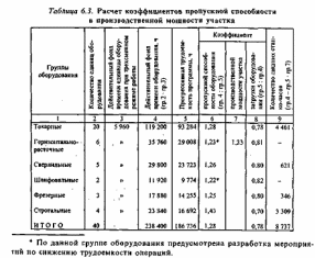 Коэффициент пропускной способности ведущей группы оборудовать применяется для расчета мощности. В этом случае он называется коэффициентом производственной мощности К, м. В нашем примере К = 1,23.