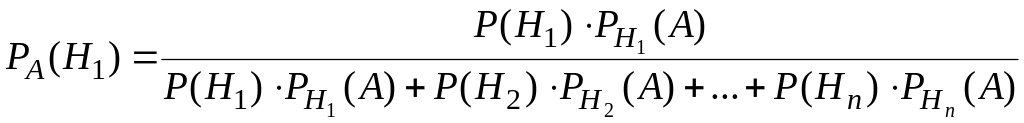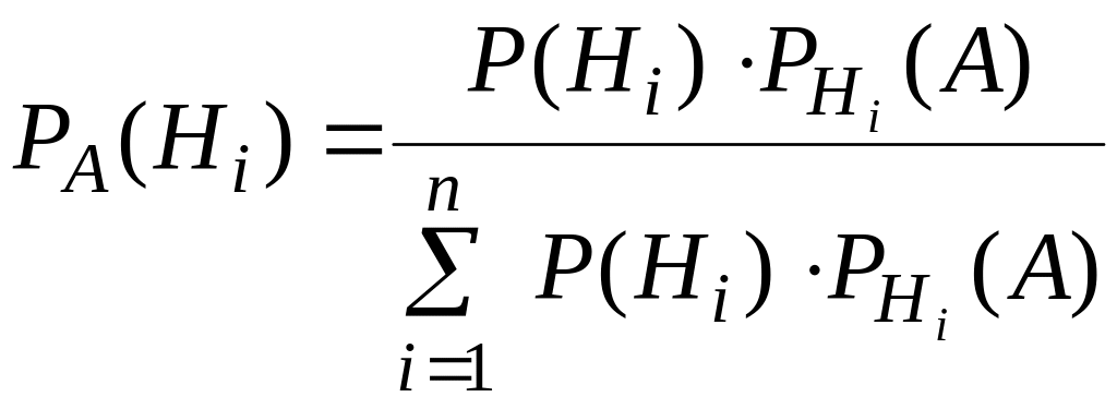 Таким образом, вероятность события А, которое может наступить лишь при условии наступления одного и только одного из несовместных событий , равна сумме произведений вероятностей каждого из этих событий на соответствующую условную вероятность события А.
