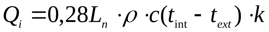 2. Расход теплоты Qi, Вт, на нагревание инфильтрующегося воздуха, по упрощенной методике следует определять по формуле