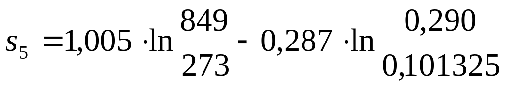 Ds5-1 = s1 – s5 = 0,075 – 0,839 = – 0,764 кДж/(кгK);