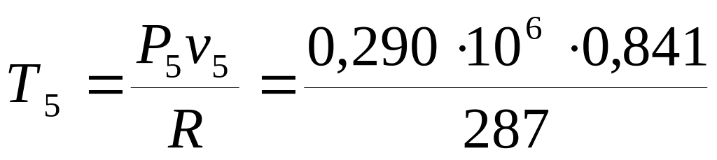 4. Для построения диаграммы цикла в p-v координатах определяем координаты трех промежуточных точек для каждого из процессов 1-2 и 4-5, используя зависимости между параметрами состояния: