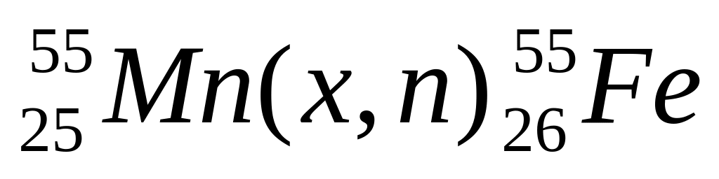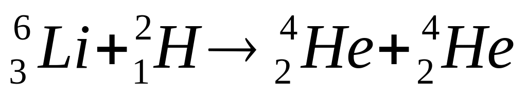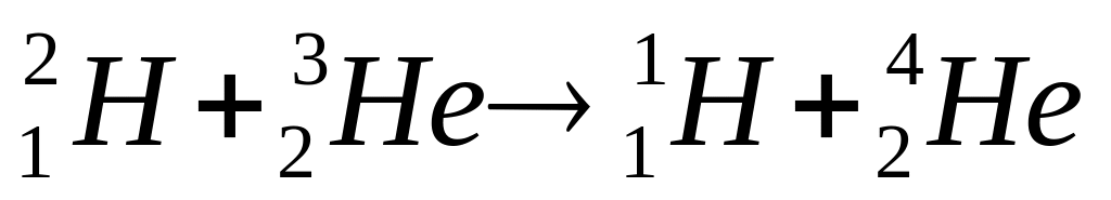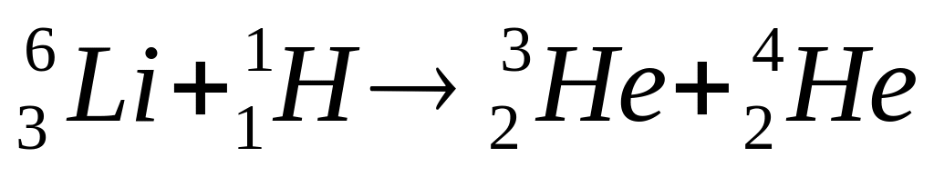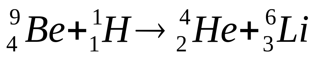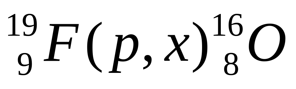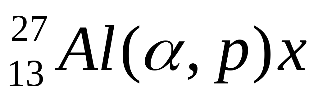 При сокращенной записи порядковый номер (нижний индекс в развернутом виде) можно не писать, т.к. он определяется химическим символом атома. В скобках на первом месте ставят обозначение бомбардирующей частицы, на втором – частицы, вылетающие из ядра, и за скобками – химический символ ядра – продукта.