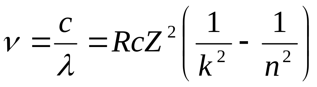 Формула, позволяющая найти частоты или длины волн для водородоподобных ионов: