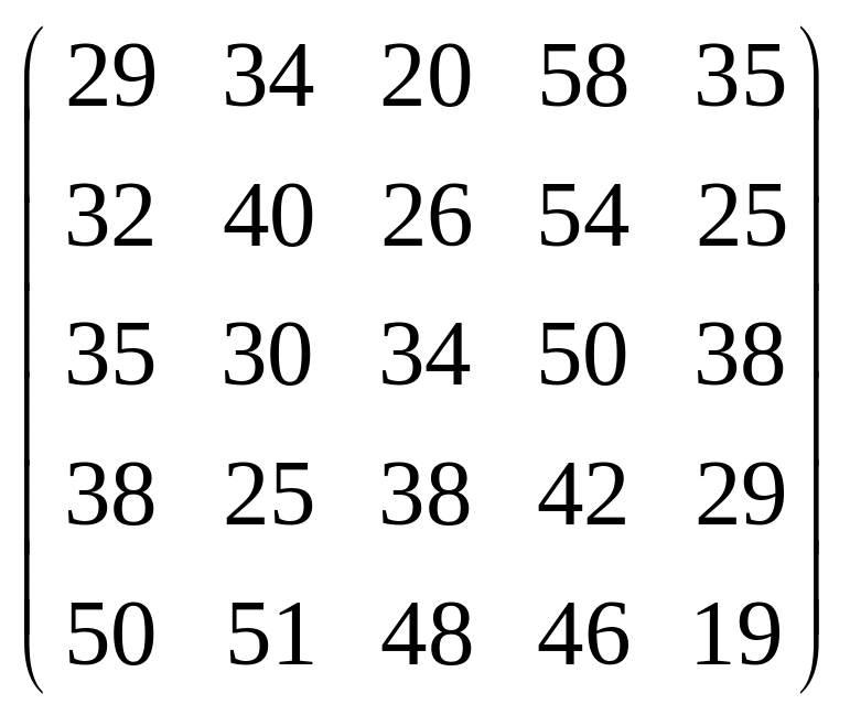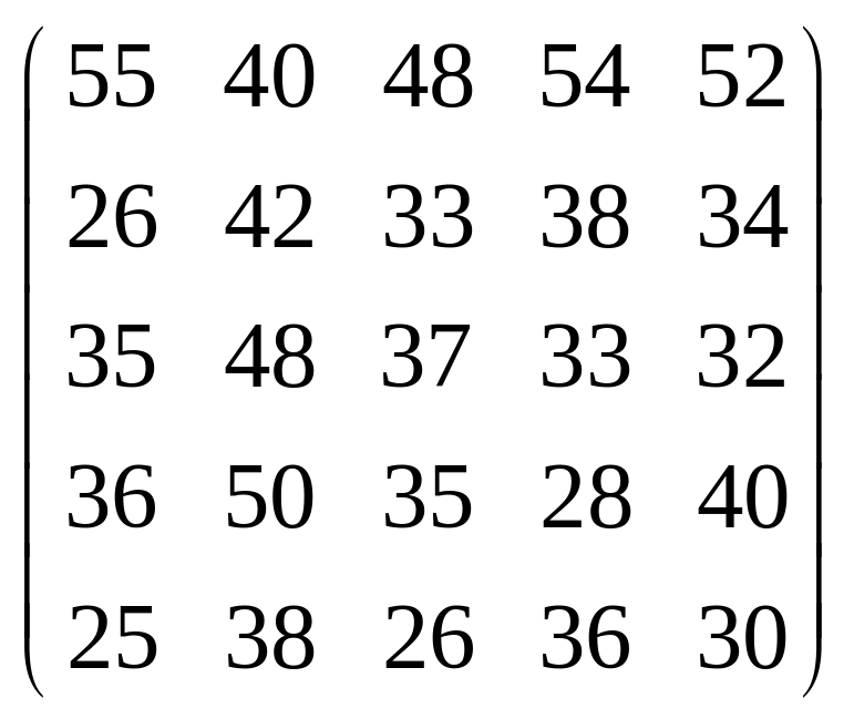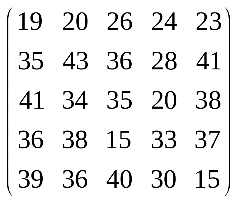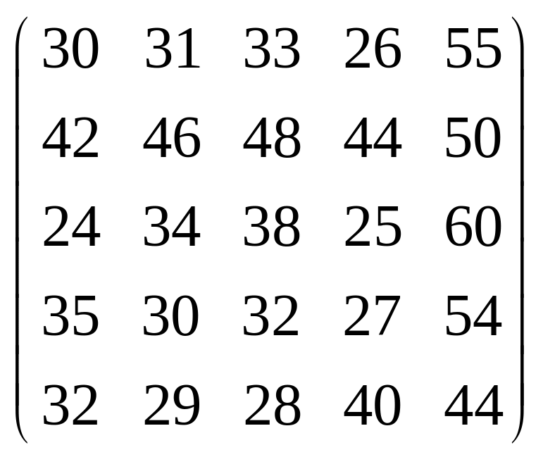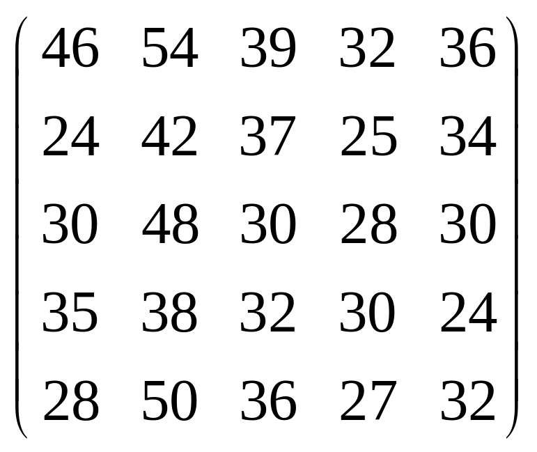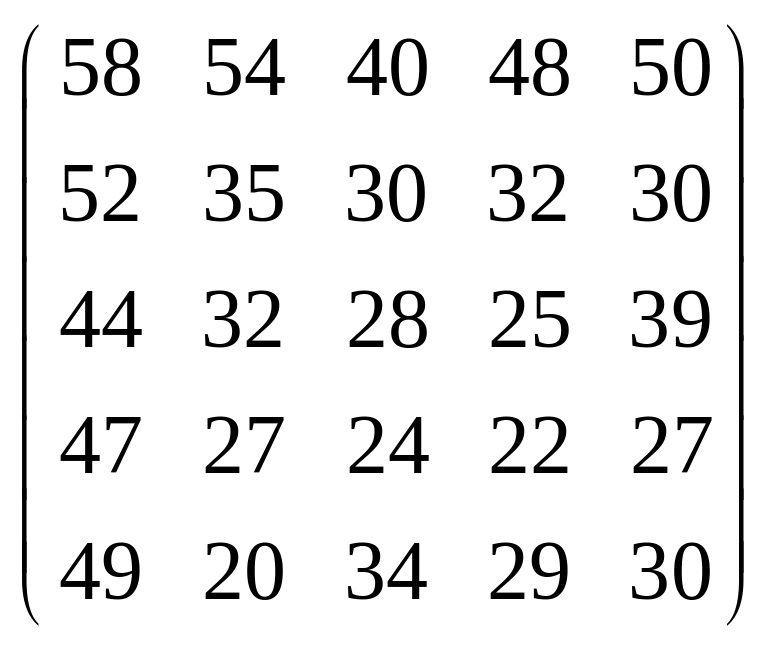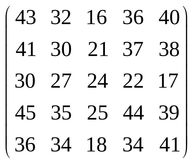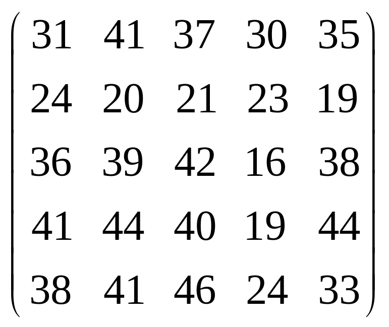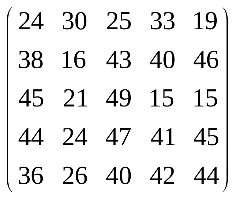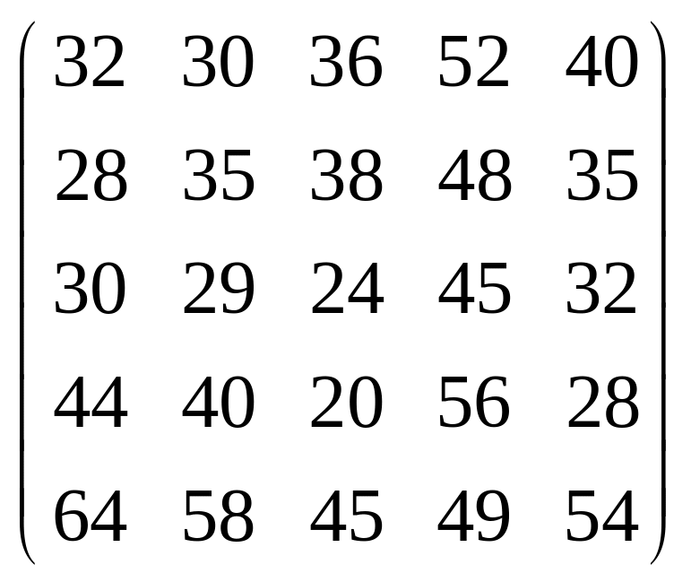 Вихідні дані для виконання завдання у вигляді матриці продуктивностей (варіанти 1–15) чи матриці витрат (варіанти 16–30) наведені на рис. 5.1.