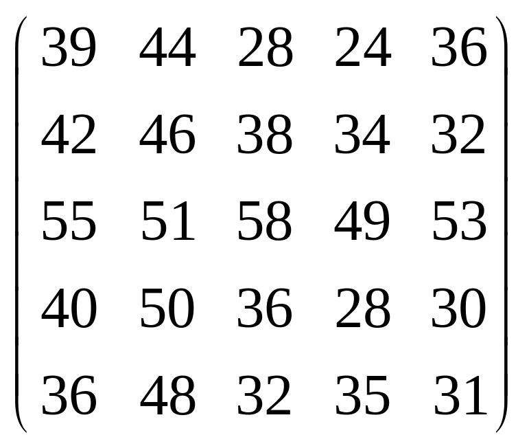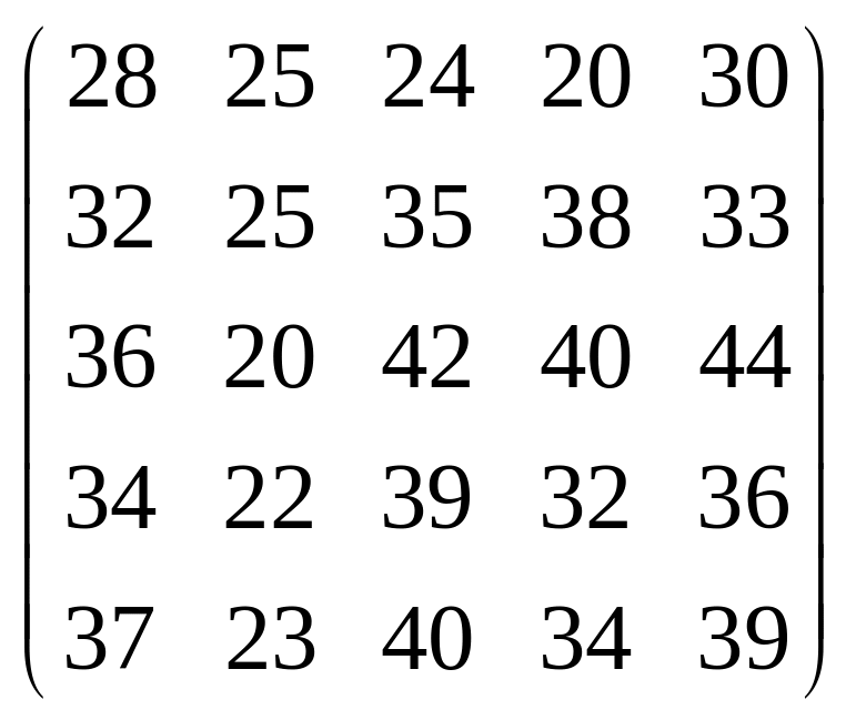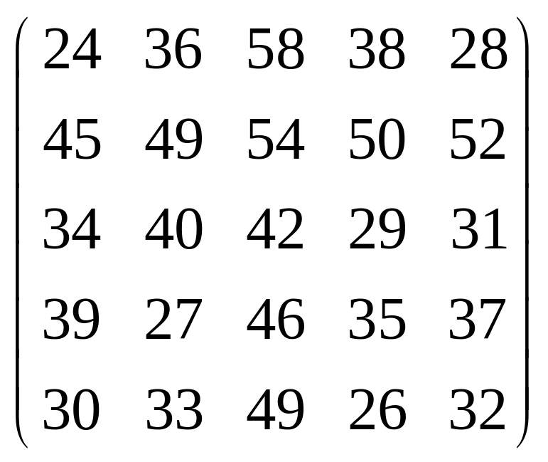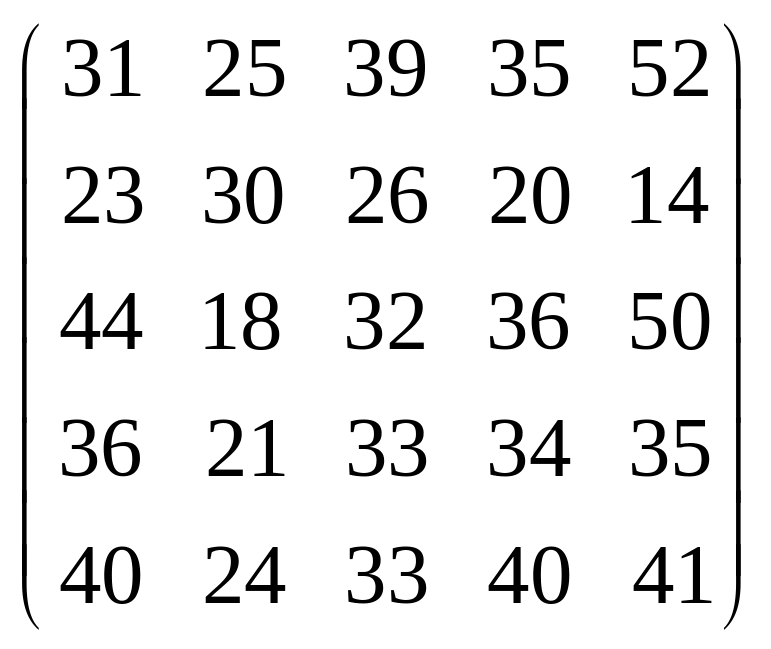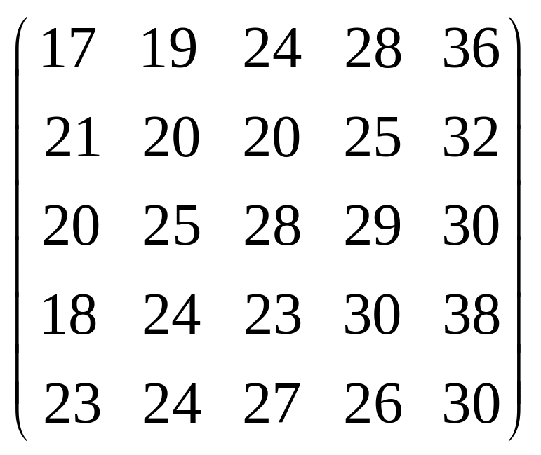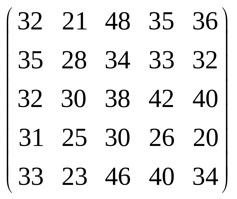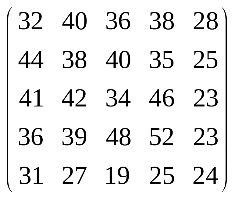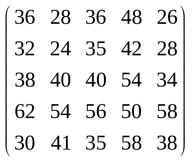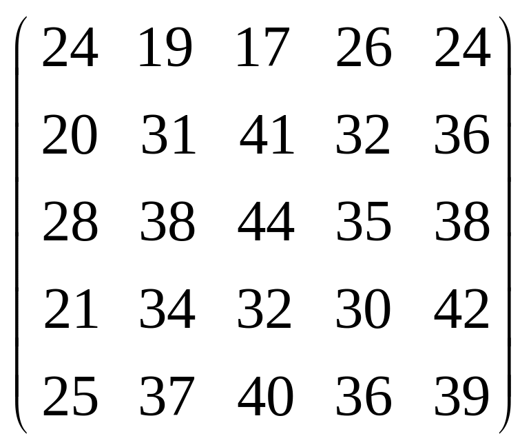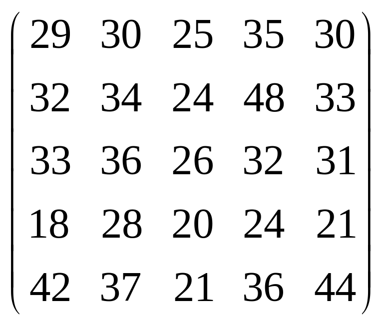 Вихідні дані для виконання завдання у вигляді матриці продуктивностей (варіанти 1–15) чи матриці витрат (варіанти 16–30) наведені на рис. 5.1.