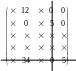 Крок 3. Мінімальний елемент, через який не проходить жодна лінія, дорівнює 12 (рядок 1, стовпчик 4). Крок 4. Віднімаємо 12 від всіх елементів, що не закреслені лініями та додаємо 12 до всіх елементів, що закреслені двома лініями. Переходимо до кроку 1. Крок 1. Закреслюємо нульові елементи. Крок 2. Кількість ліній дорівнює 4 <5. |