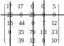 Крок 3. Мінімальний елемент, через який не проходить жодна лінія, дорівнює 5 (рядок 1, стовпчик 5). Крок 4. Віднімаємо 5 від всіх елементів, що не закреслені лініями та додаємо 5 до всіх елементів, що закреслені двома лініями. Переходимо до кроку 1. Крок 1. Закреслюємо нульові елементи. Крок 2. Кількість ліній дорівнює 5=5, отже знайдене оптимальне рішення. |