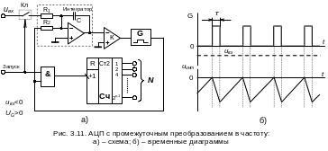- •3.3.4. Ацп с промежуточным преобразованием напряжения в частоту