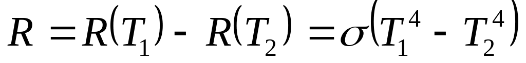 Из закона Стефана-Больцмана следует, что количество тепловой энергии, передаваемое единицей поверхности абсолютно черного тела, находящегося при температуре Т1, в окружающую среду имеющую температуру Т2 (если среду можно рассматривать как абсолютно чёрное тело), равно: