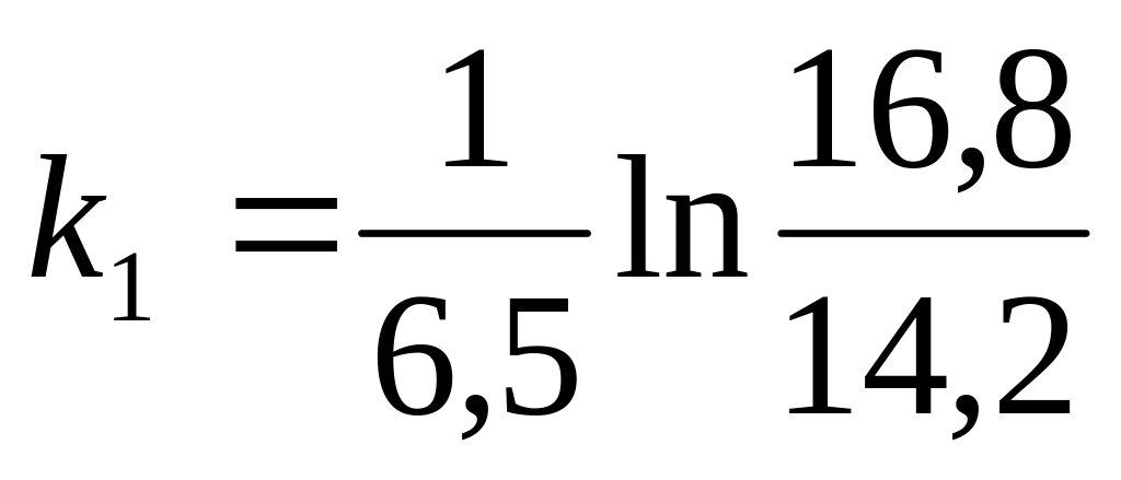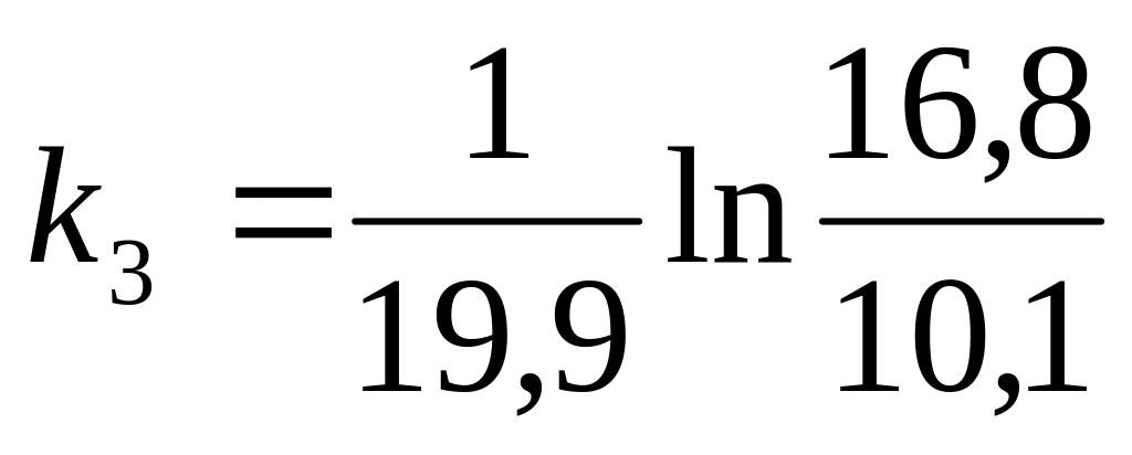 До п.3: Для підтвердження встановленого порядку реакції (1) розрахуємо константи швидкості у різні моменти часу :